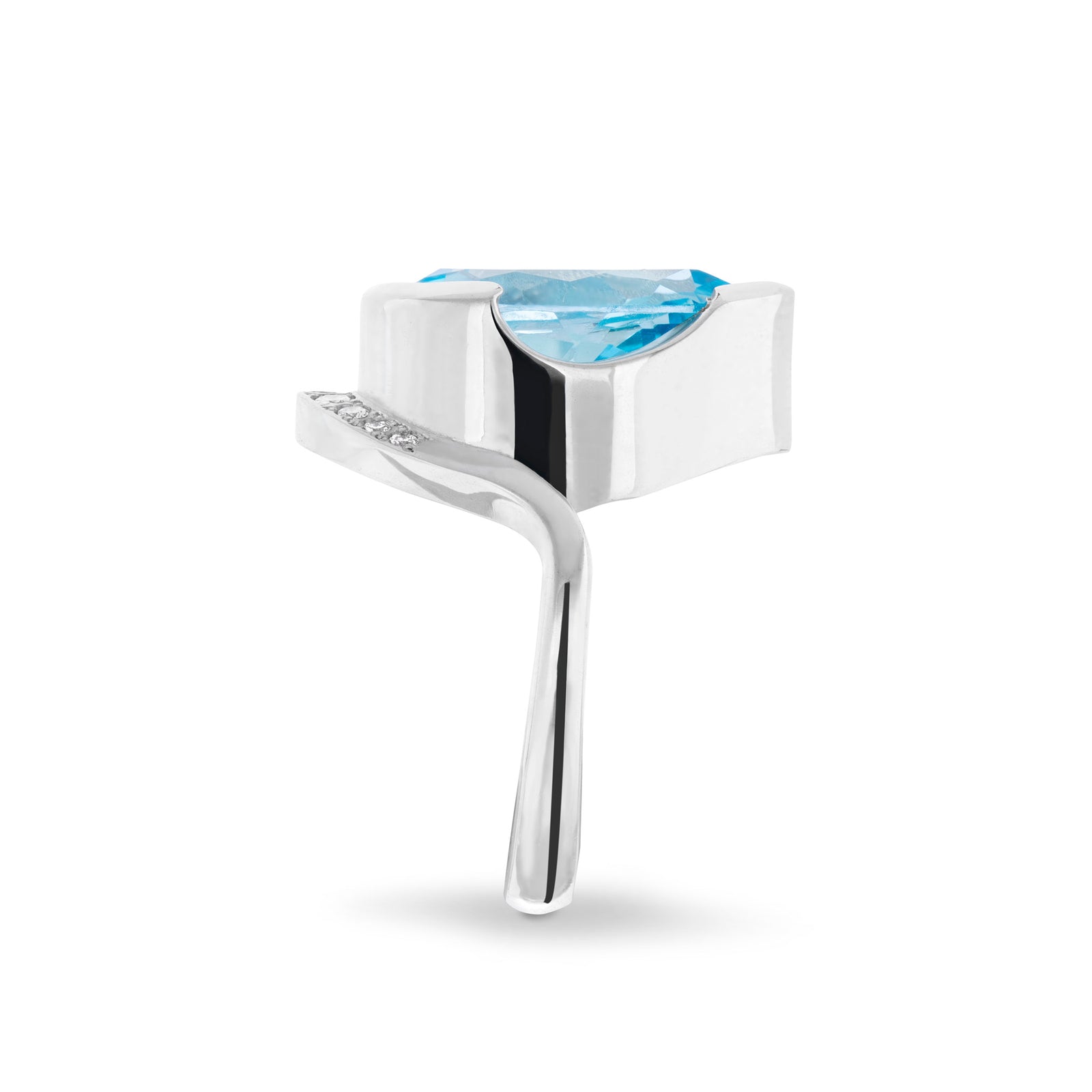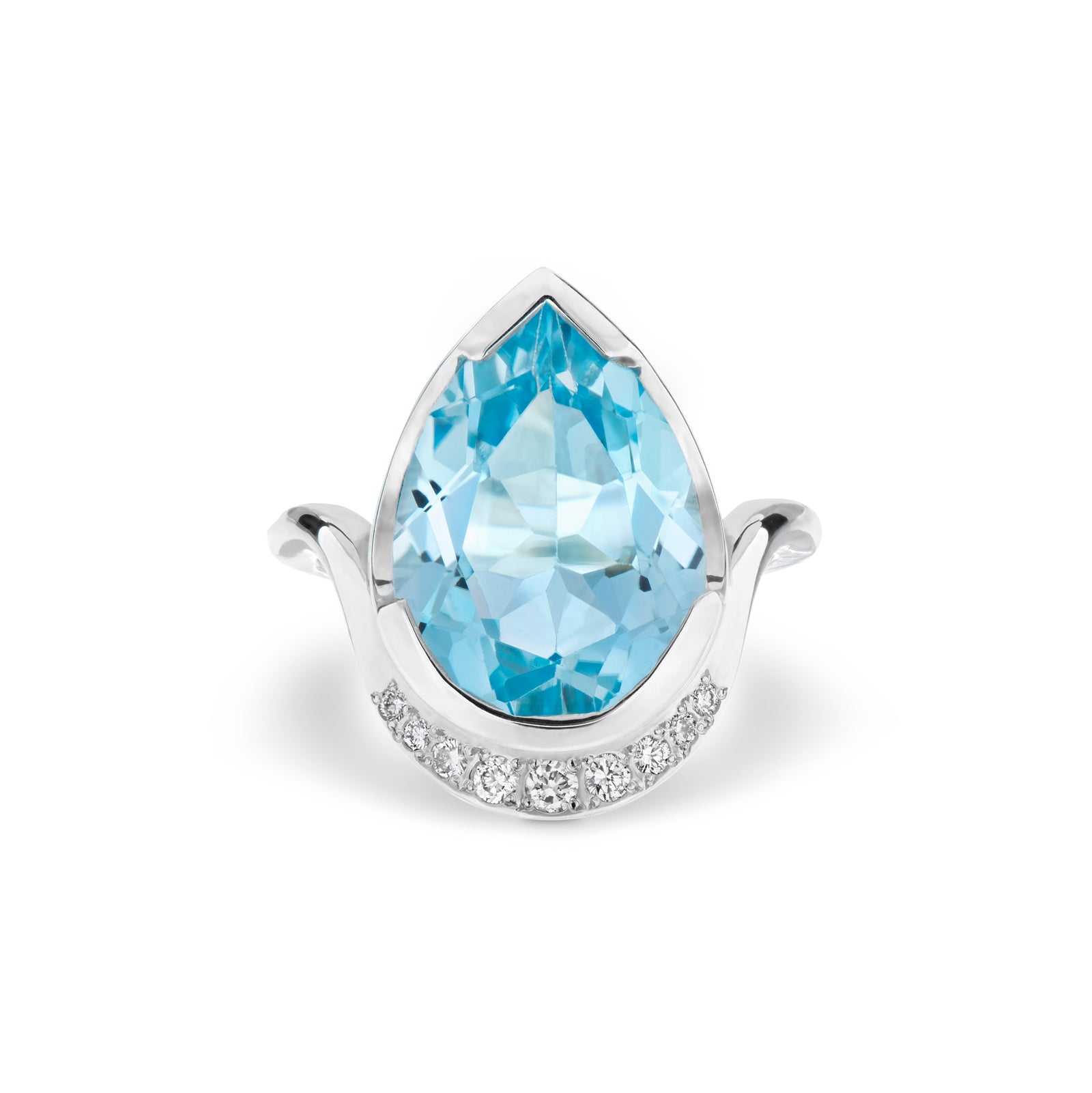 Blue topaz united with shining silver sunbeams. The appearance of sunlight dancing on the ocean is effortlessly captured in this collection. A peaceful sky reflected in the motion of the glistening sea.